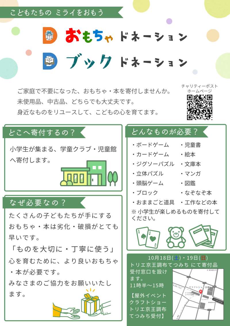 調布市内で、おもちゃドネーション / ブックドネーションを行います。