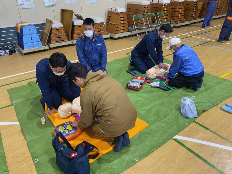 防災訓練終盤に体育館にて防災DVD映像が流れ,最後には消防署長から本日の訓練の話や,今後震災が発生した時に,まず自分がどのように動くかなど,本日の防災訓練を通じて,考えてほしいとのお言葉がありました。