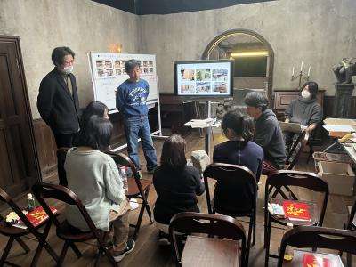 映画・映像業界のプロが作成した短編映像作品の台本・セットに沿って、仕込みから本番撮影までを「撮影」・「照明」・「録音」・「美術」・「演出」に分かれて体験できるワークショップです。
