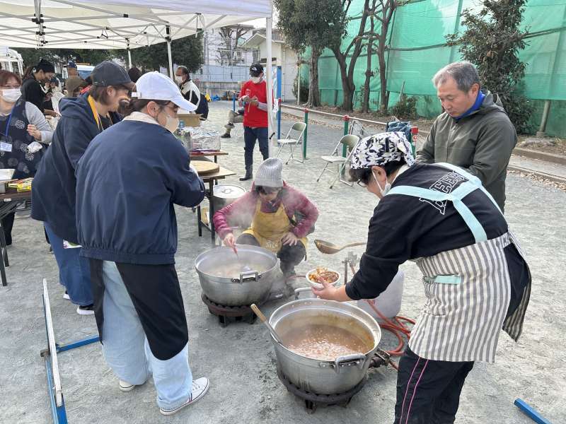 「防災フェス」という名前の通り、会場にはノリの良い音楽が流れ、テンポよく準備を進めている様子でした。特に調理班の皆さんは、体を揺らしながら楽しそうにテキパキ野菜を刻んでいました!