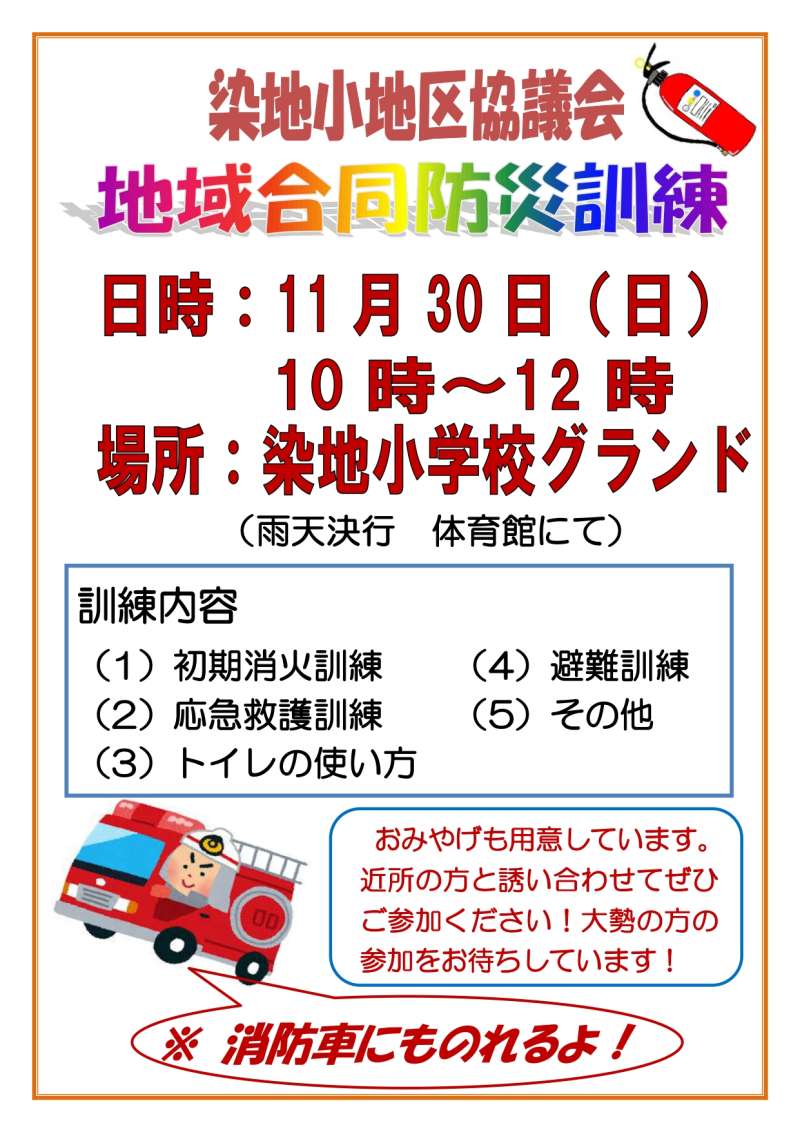 令和7年11月30日に開催された染地小地区協議会の防災訓練に参加しました。
