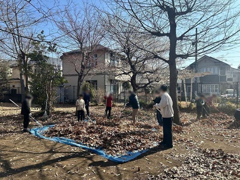 落ち葉だめの整備は、石原小学校地区協議会主催で、夏と冬の年2回実施している活動です。落ち葉を集めて腐葉土にすることで、カブトムシの幼虫を育て、地域の子ども達に配っています!
