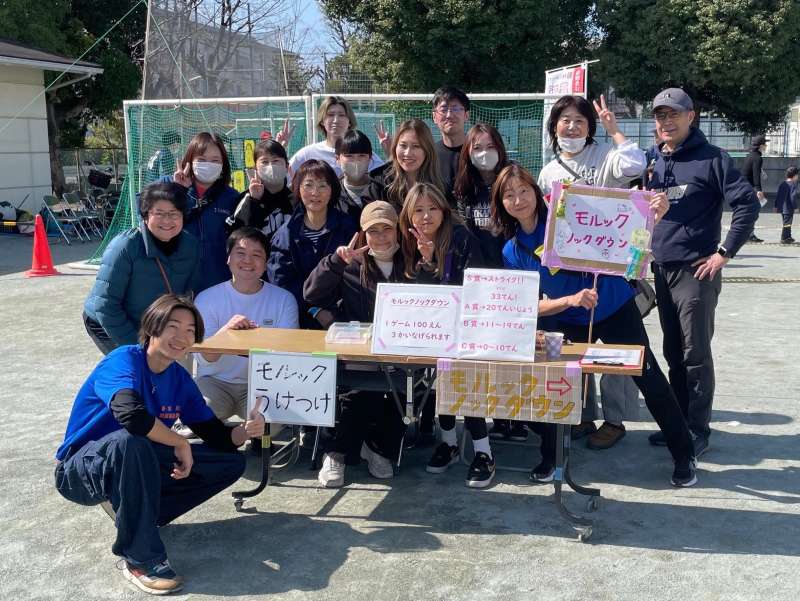 多摩川地区協議会のブースでは、「モルックノックダウン(ゲーム)」を出し、得点に応じてお菓子のもらえる数や大きさが違うというものでした。