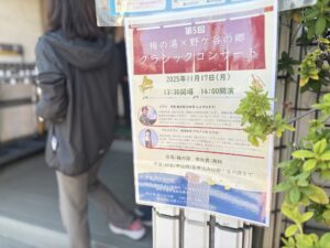 実はこの日、ピアノとヴァイオリンによるクラシックコンサートが大浴場を会場にして行われるというのです。その名も「梅の湯×野ヶ谷の郷クラシックコンサート」。